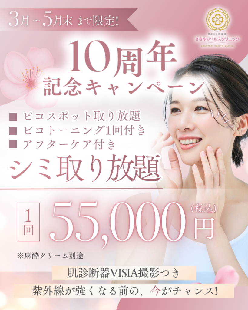 ✔ シミをまとめて取りたい → ピコレーザー(シミ取り放題)