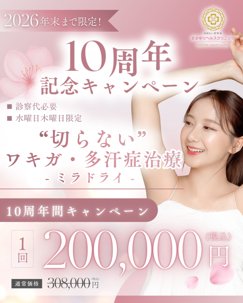 ✔ わき汗・においを根本改善したい → ミラドライ(多汗症治療)