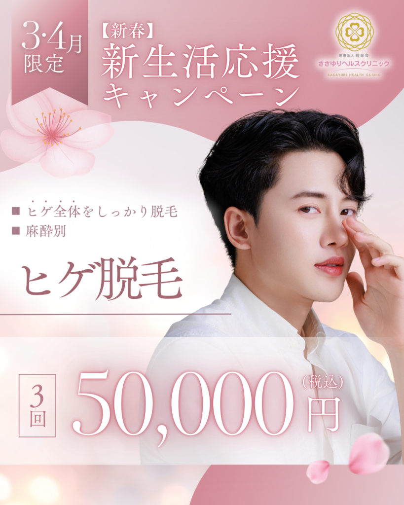 ▶ ヒゲ脱毛 3回 50,000円(税込)※麻酔別