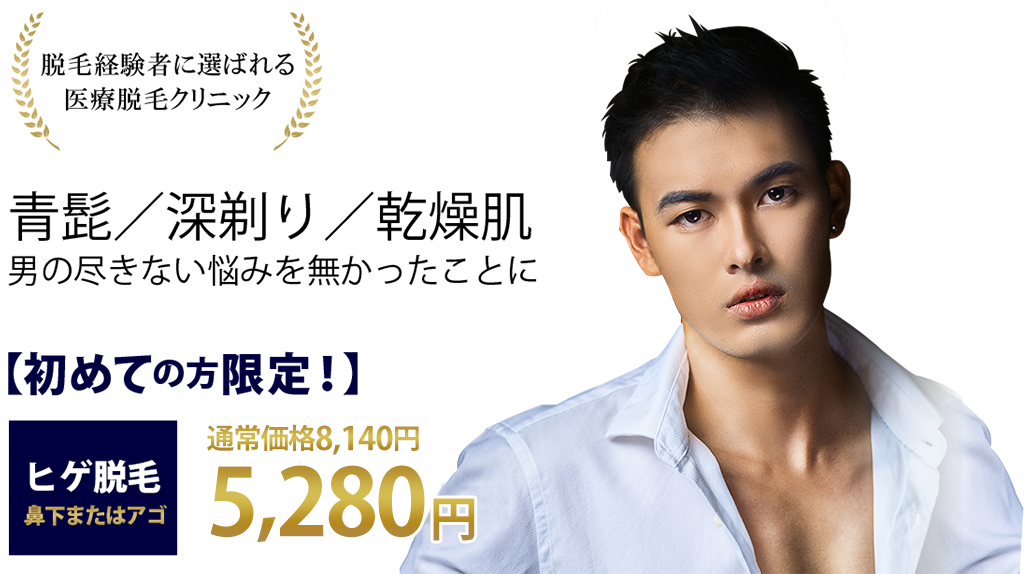 青ヒゲの原因は薄い皮膚から透けて見えるヒゲです。脱毛することで青ヒゲは解消されます。