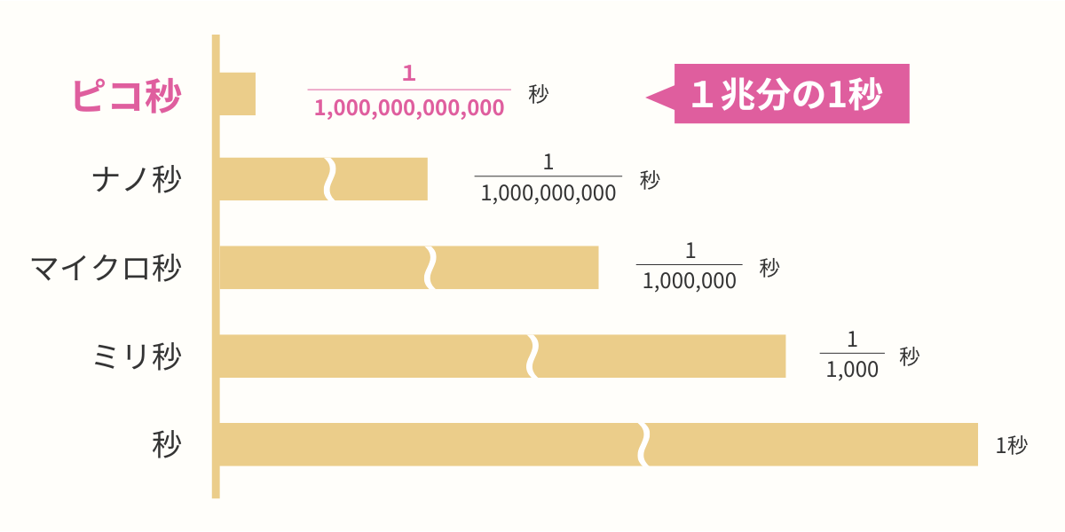 ピコレーザーのピコとは、Qスイッチレーザーのナノと同じく長さを表す単位です。 レーザーは、照射時間が短ければ短いほど皮膚を熱変性させずに、色素を破壊させことができます。 その照射時間を短くする研究を重ね、ついにナノ秒より短いピコ秒での照射ができるレーザーが開発されたのです。それがピコレーザーエンライトンSRです。従来のQスイッチレーザーが「ナノ秒(10億分の一秒)」という単位であたり、熱の力でメラニン色素を壊すのに対し、ピコレーザーはさらに短い「ピコ秒(1兆分の1秒)」という単位でレーザーがあたるため、熱をあまり広げずに“衝撃波のように”色素を細かく砕くことができます。このため、ピコレーザーは 余分な熱によるお肌へのダメージが少ない のが特徴です。